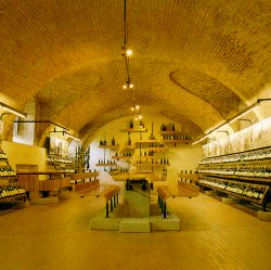 Housed in the castle of Count Camillo Benso di Cavour, who was the village mayor, it brings together a range of the highest quality of Piedmontese wines selected by the 'Order of the Knights of the Truffles and Wines of Alba'. A series of rooms with strictly period fumishings and displays can be visited in the castle, where there is also a restaurant with an lustrious history which is a point of reference for the great Alba cuisine. The first Piedmontese public wine centre is located in the impressive castle where the renowned statesman, Cavour once worked when he was a young mayor and the enlightened administrator of the estates inherited from his father. The Centre was officially inaugurated in 1971 and is certainly a leading showcase for the best wines and grappas from the whole of Piedmont. The products on sale are carefully selected by the Master Winetasters of the Order of the Truffle and the Wines of Alba, a body entrusted with the running of the Centre and the promotion and supervision of all its displays and other events. In addition to the Centre and some very attractive views, the Castle offers several other permanent exhibitons: 1 7th and 1 9th-century Alba kitchen settings, very detailed reconstructions of a farrier's and a cooper's workshop, an 18th-century distillery, wineglasses and illustrations of the history of food and wine in the Alba district.