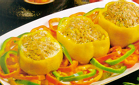 Server 4. Wash 8 peppers and briefly broil them in them in the oven, in order to remove the skin and seeds. Cut each in half and fill with the "Bagna Cauda" (see recipe). Serve the peppers at room temperature. This dish can certainly be served as an hors-d'oeuvre as well as tasty vebetable with roasted or boiled meat.