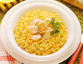 Server 6. Finely chop and sautè 1 onion, then add 3 cups rice, previously boiled in salted water. Pour in 1 cup of the best Piedmontese wine, a good aged Barolo and, gradually, hot broth until cooked. Season with butter, grated Parmesan cheese and a pich of pepper. Stir well and serve with a sprinkling of slivered truffles. Other classic Piedmontese risottos include those with Fonduta, with frogs, with tripe and with asparagus heads.