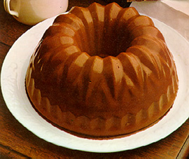 In a mixer bowl, cream 1/3 cup sugar, 5 eggs and 1 tbs. cocoa. Add 2 cups scalded milk, 1/2 cup espresso coffee, 2 tbs. rum, 4 oz. crushed macaroons and stir well. Coat a pudding mould with 3 tbs. sugar and pour in the batte. Set in a pan of hot water and bake in a moderate oven for about 40 minutes. The word "bònet" means "cap" and refers to the shape of the most common pudding mould, that reminds of a typical XVIII century hat.